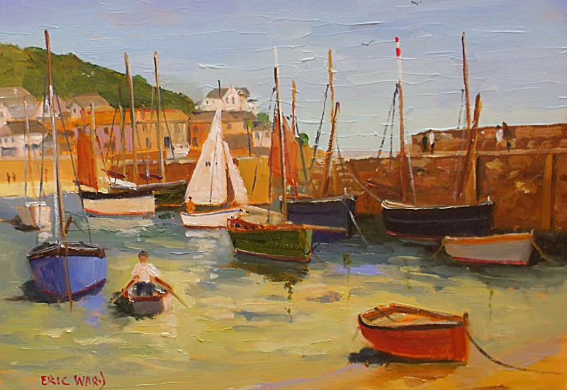 Eric Ward Original Oil Painting - Mousehole Harbour Cornwall 'Cornish Art'