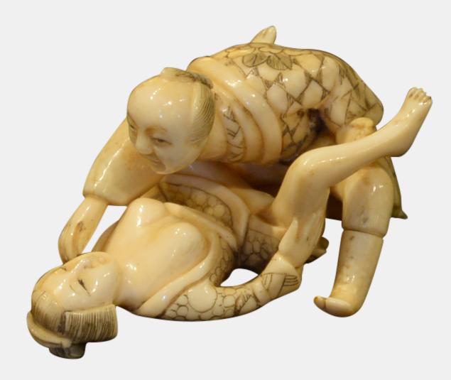 Erotic Japanese Meiji Period Okimono of 2 Lovers c.1900 (1 of 1)