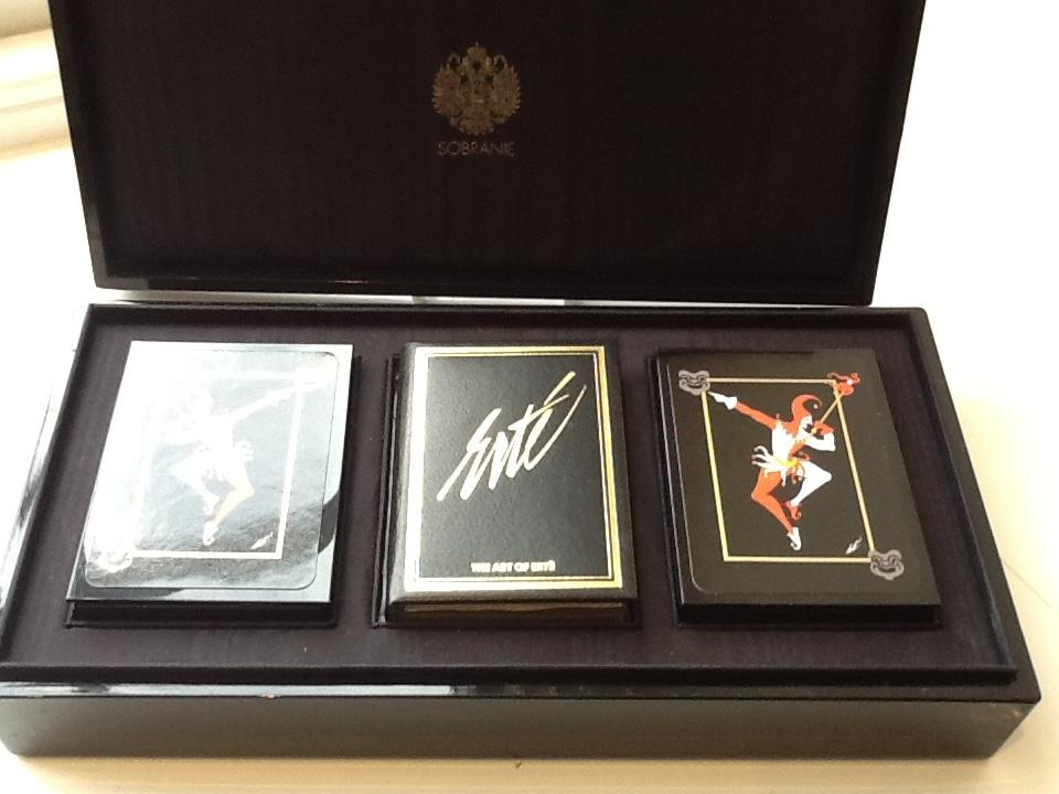 "Erte" Russian Sobranie Black Lacquer Box with Playing Cards & Booklet