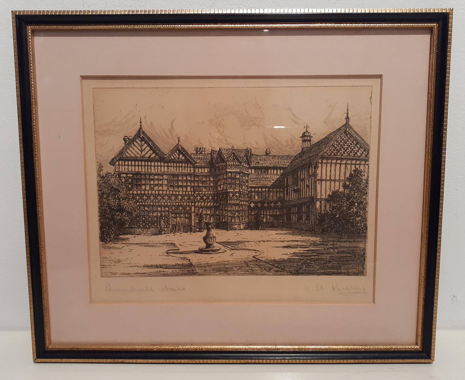 Etching by RA Riseley, "Bramhall Hall"
