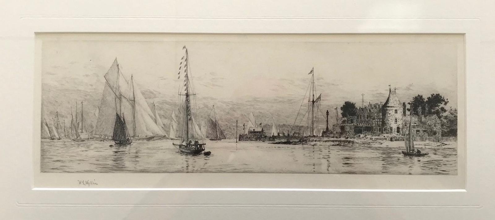 Etching by W L Wyllie RA '8 & 12m yachts at Cowes'
