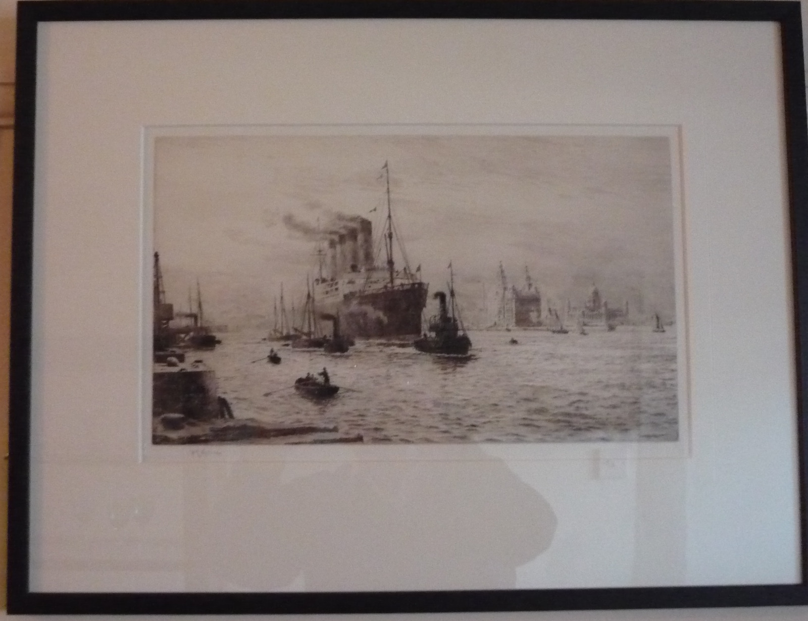 Etching by W.L.Wyllie RA RMS Mauretania c.1910