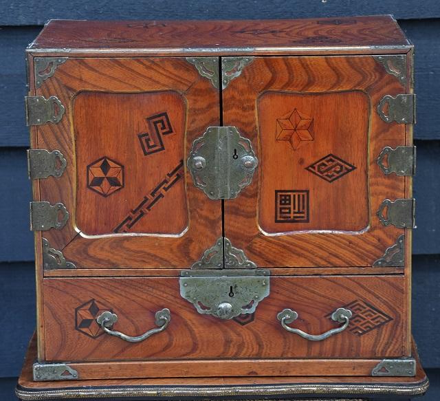 Excellent 19th Century Japanese Oriental Elm Jewellery Box / Table Cabinet