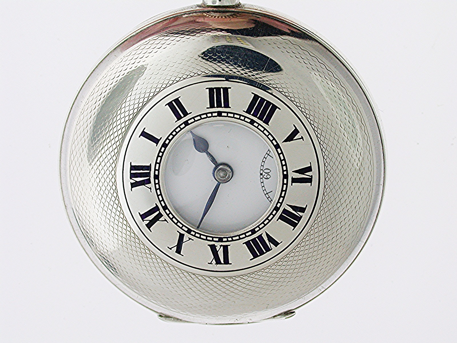 Excellent Half Hunter Silver Pocket Watch Swiss Made London Import Hallmark 1918