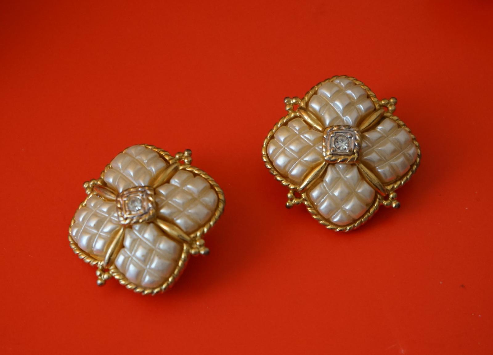 Excellent Pair of Gilt, Pearl & Rhinestone Earrings