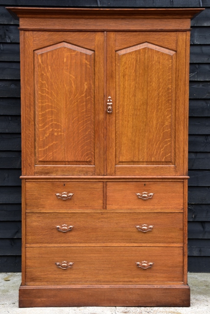 Excellent Quality Victorian Arts & Crafts Oak Linen Press c.1895