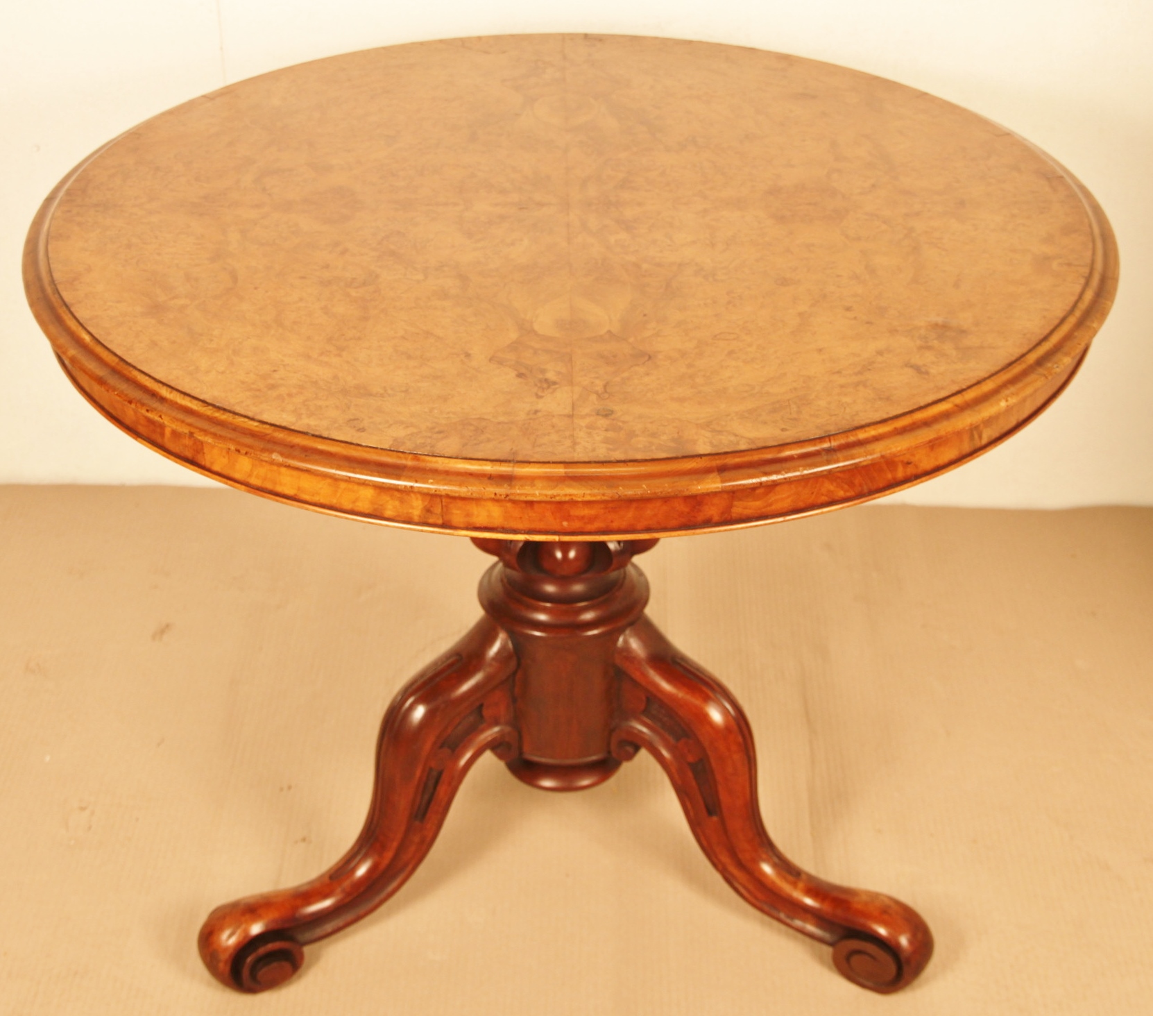 Excellent Round Victorian Burr Walnut Centre Table c.1870 (1 of 1)