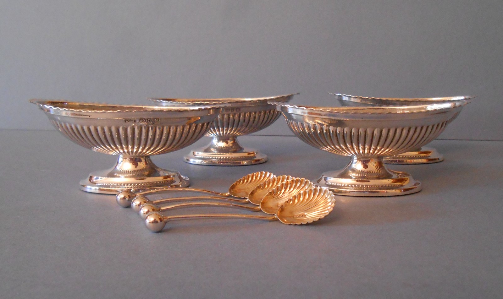 Excellent Set of Victorian Silver Salts with Spoons 1898