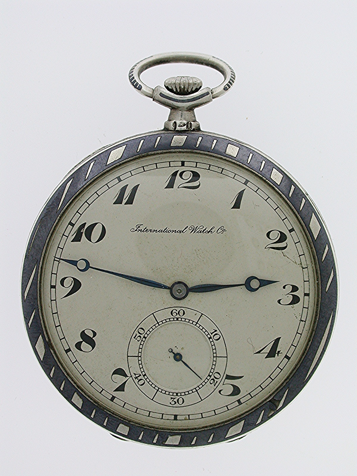 Excellent Silver 0.900 I.W.C. Schaffhausen Gold & Niello Pocket Watch - Swiss 1928 (1 of 1)