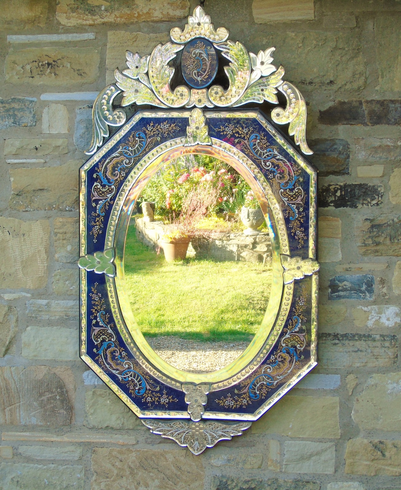 Exceptional 19th Century Venetian Cut Glass & Enamelled Mirror