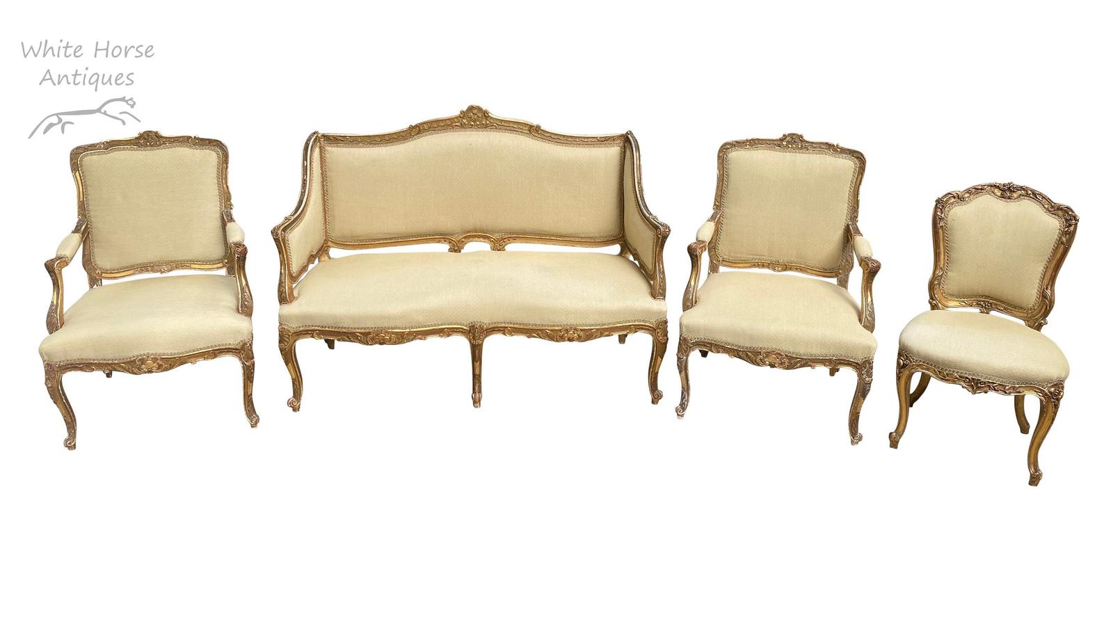 Exceptional Antique French 19th Century Gold Gilt Upholstered Salon Suite