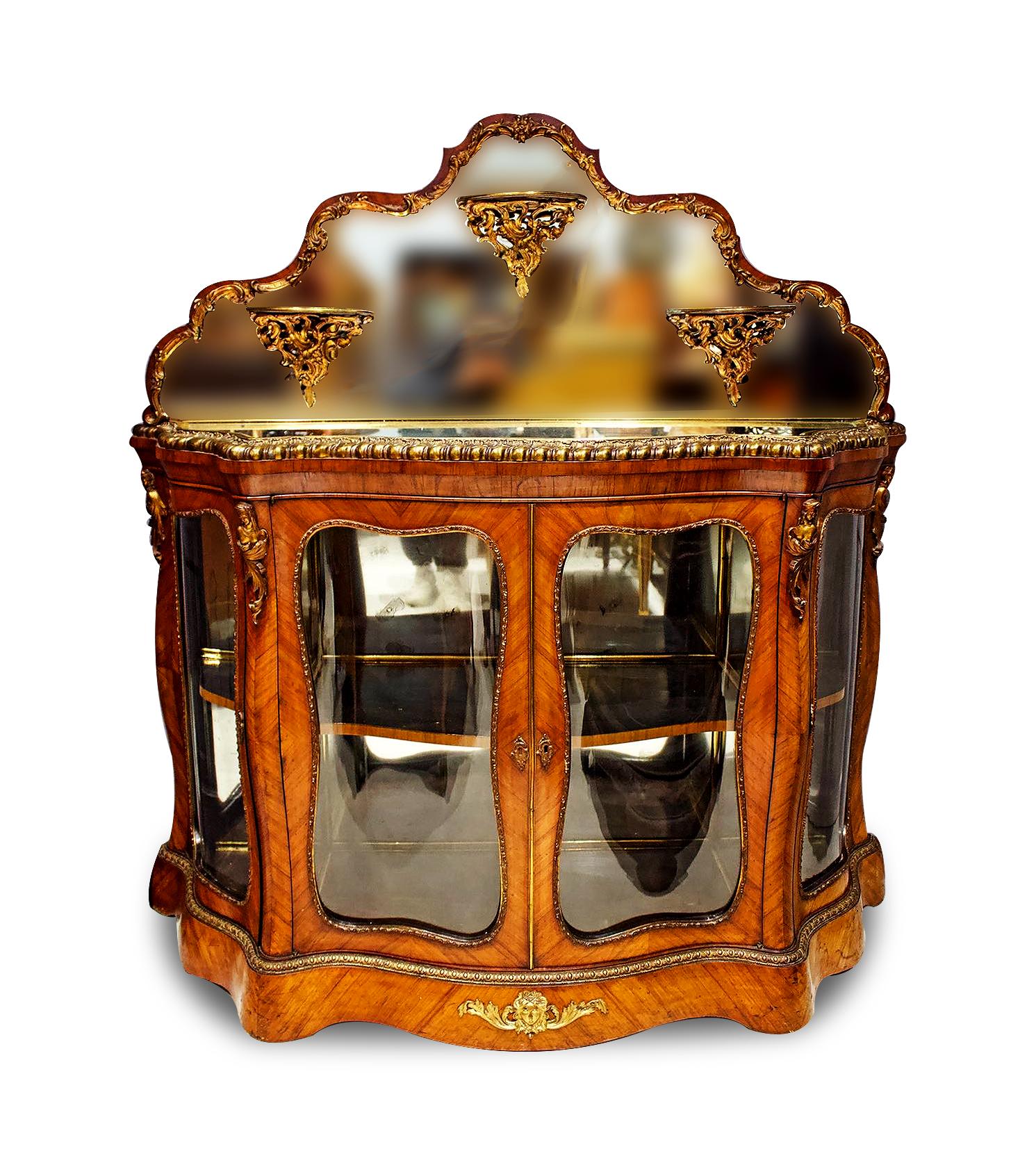 Exceptional Antique Kingwood Side Cabinet with Mirrored Top - Rare Shape and Form