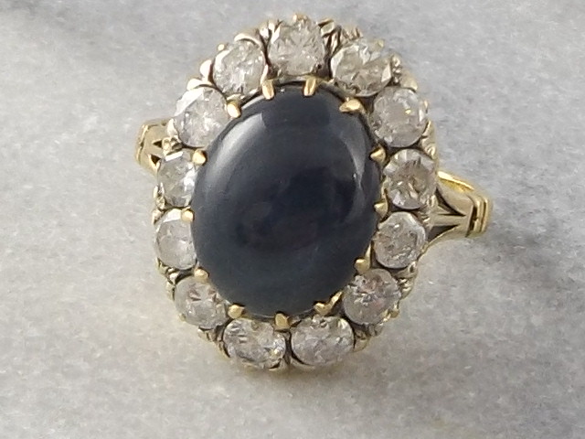 Exceptional Art Deco 18ct Gold 6ct Sapphire & 2ct Diamond Ring