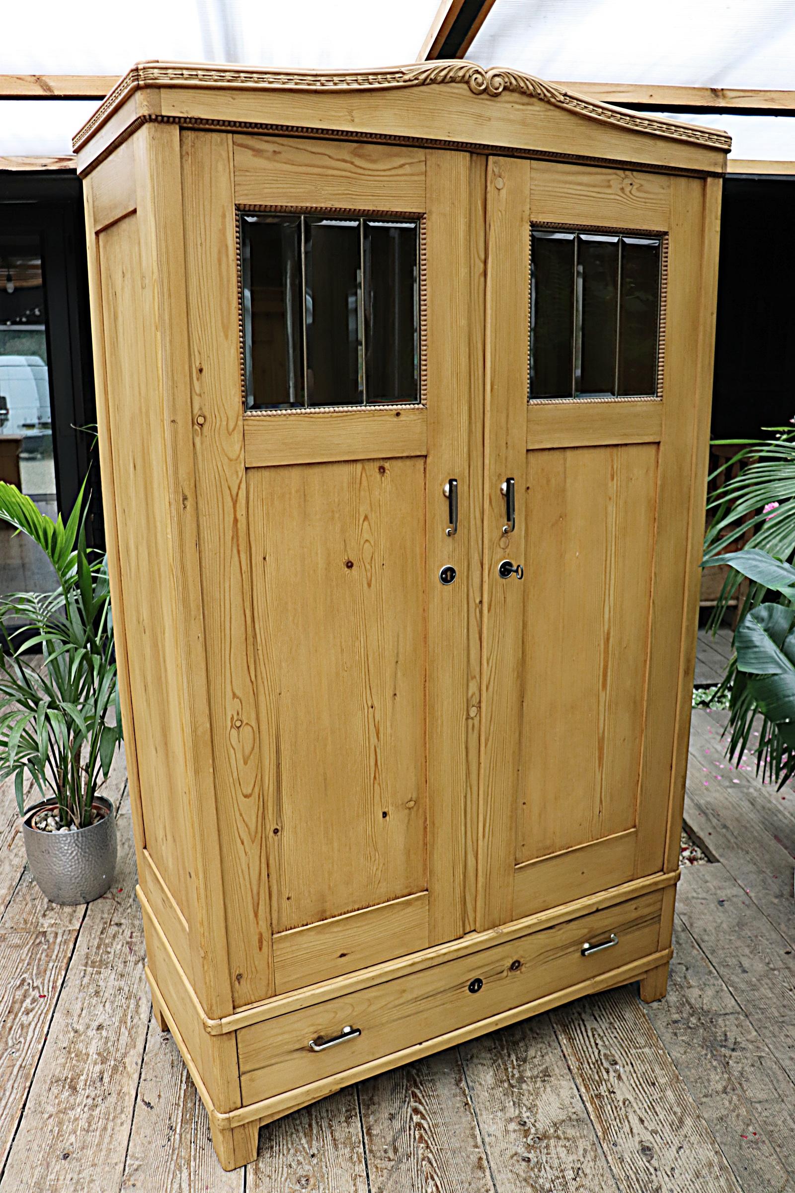 Exceptional Early 20th Century Old Double Pine Wardrobe / Cupboard - Line / Larder / Food