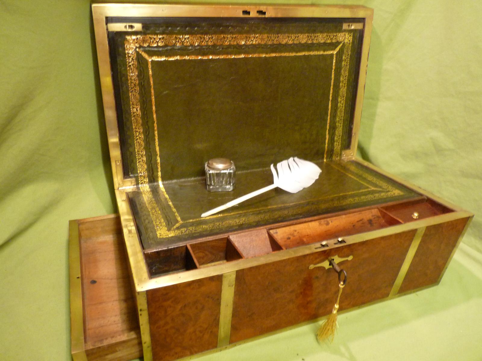 Exceptional FULLY Brass Bound Amboyna Writing Box c.1850