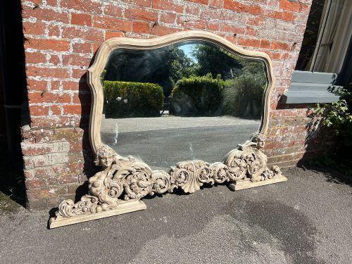Exceptional Large Antique 19th Century Italian Walnut Painted Mirror