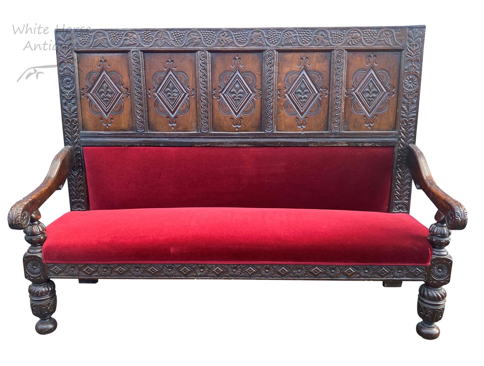 Exceptional Large Antique Carved 18th Century English Oak Settle, Hall Seat, Pew