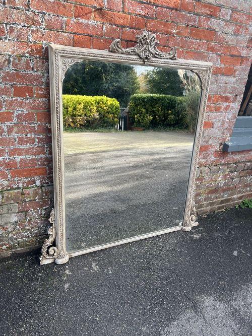 Exceptional Large Antique English 19th Century Carved Wood & Gesso Painted Overmantle Mirror