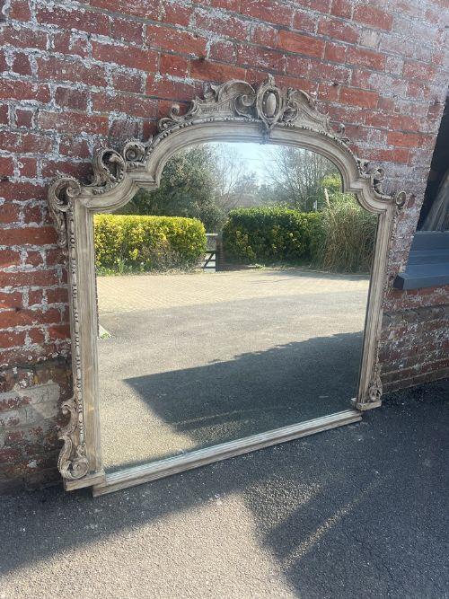 Exceptional Large Antique English 19th Century Carved Wood Painted Shaped Top Mirror