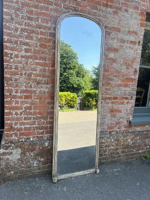 Exceptional Large Antique French 19th Century Carved Wood & Gesso Arched Top Painted Mirror