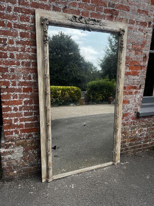 Exceptional Large Antique French 19th Century Carved Wood & Gesso Painted Ribbed Framed Mirror