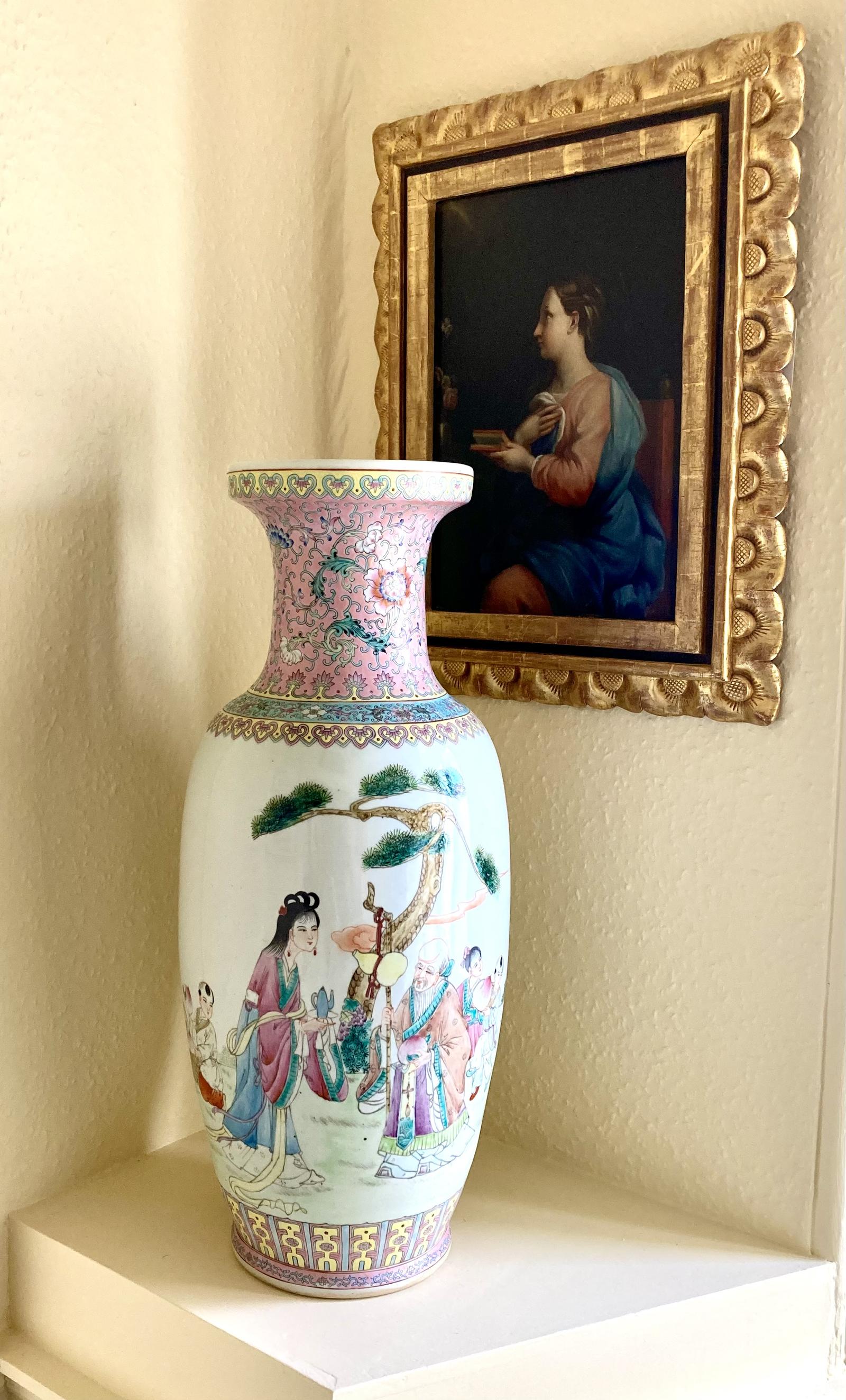 Exceptional Large Chinese Famille Rose Hand Painted Vase