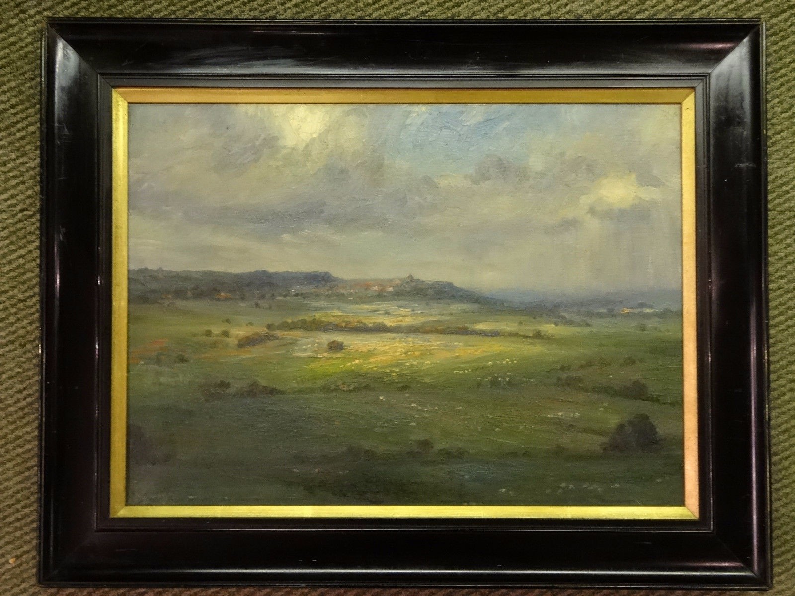 Exceptional Large early 20thc Landscape Oil on Canvas Painting - Ebonized Frame