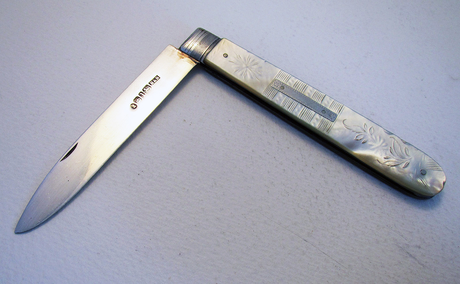Exceptional Large Georgian William IV Solid Sterling Silver & Mother of Pearl Mop Antique English Sheffield Folding Pocket Fruit Penknife 1833