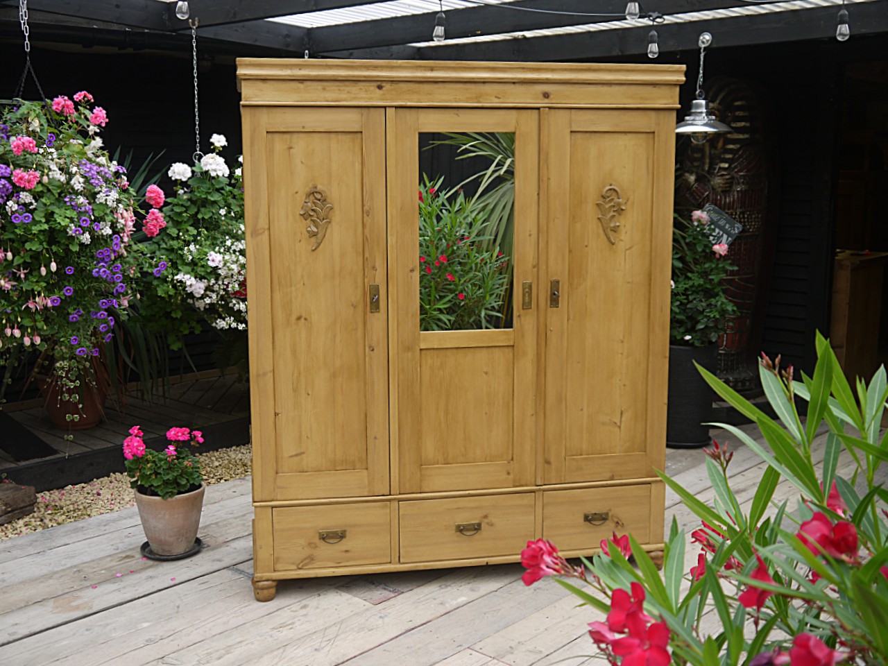 Exceptional! Large Quality Old Antique Pine Triple Knock Down Sectional Wardrobe