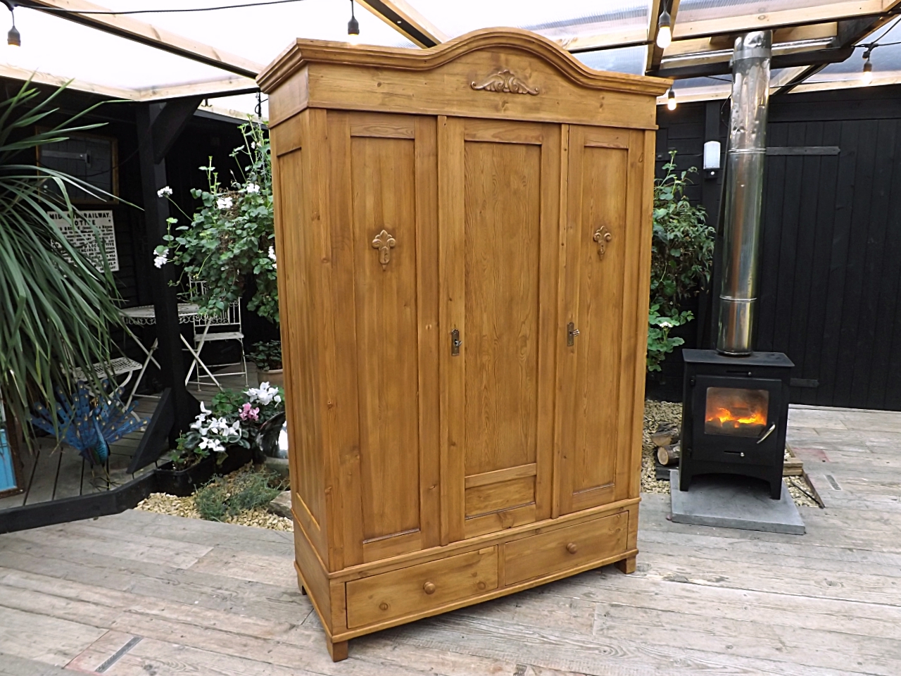 Exceptional! Large Quality Old Antique Pine Triple Knock Down Sectional Wardrobe