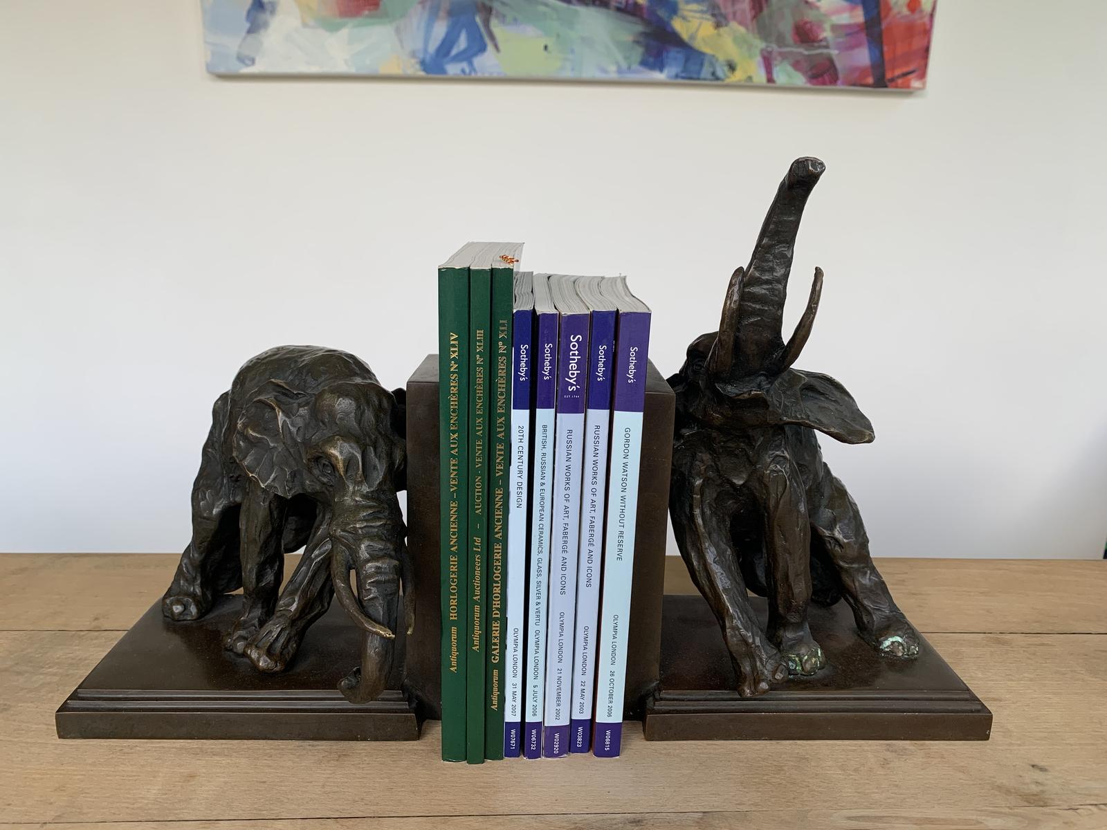 Exceptional Pair of Cast Bronze Elephant Bookends