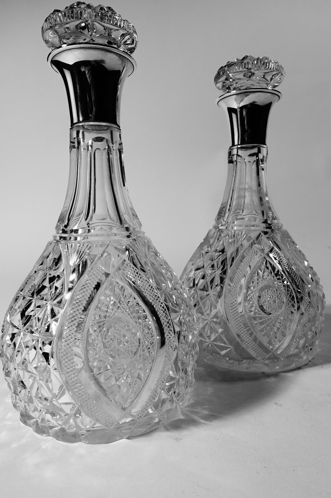 Exceptional Pair of Early 20th Century Cut-Glass English Silver Decanters