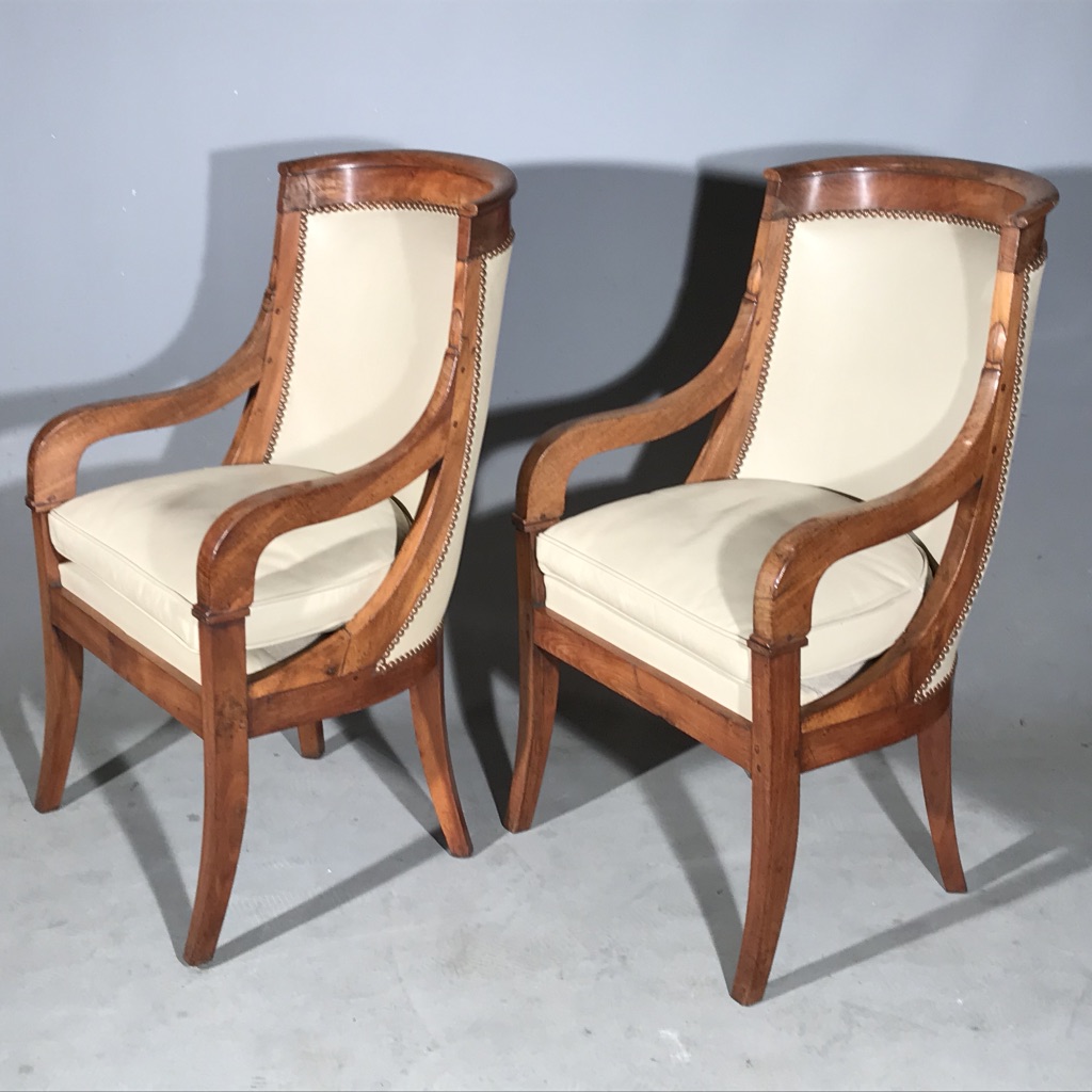 Exceptional Pair of French Empire Chairs in Walnut & Leather