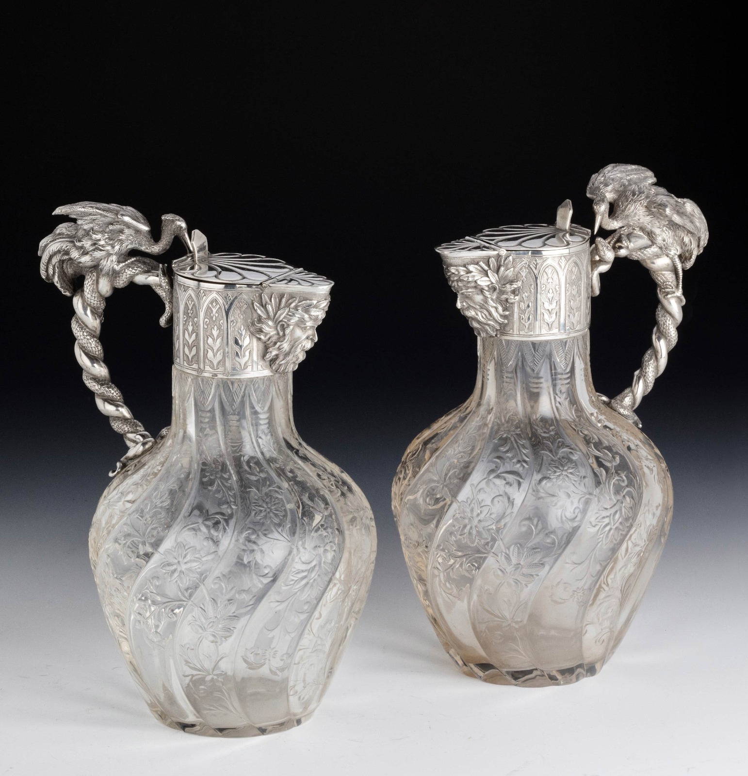 Exceptional Pair of French Silver Claret Jugs c.1900