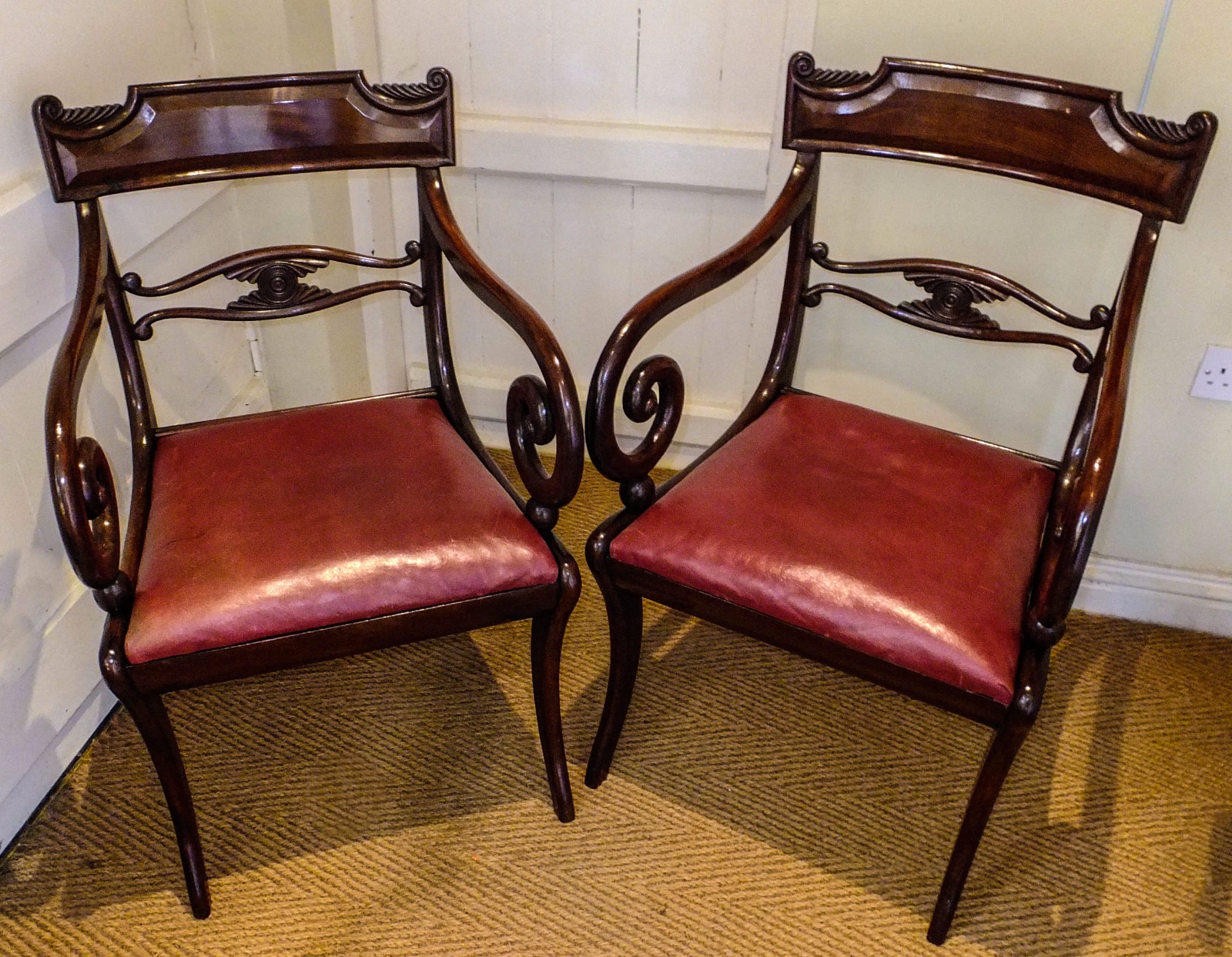 Exceptional Pair of Regency Mahogany Open Armchairs