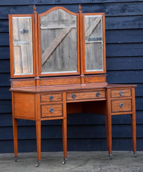Exceptional Quality Edwardian Satinwood Dressing Table with Mirrors c.1901