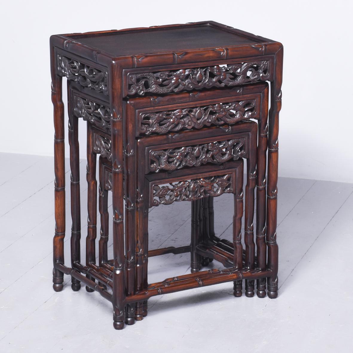 Exceptional Quality Qing Dynasty Hongmu Carved Chinese Large Nest of Four Tables (1 of 14)