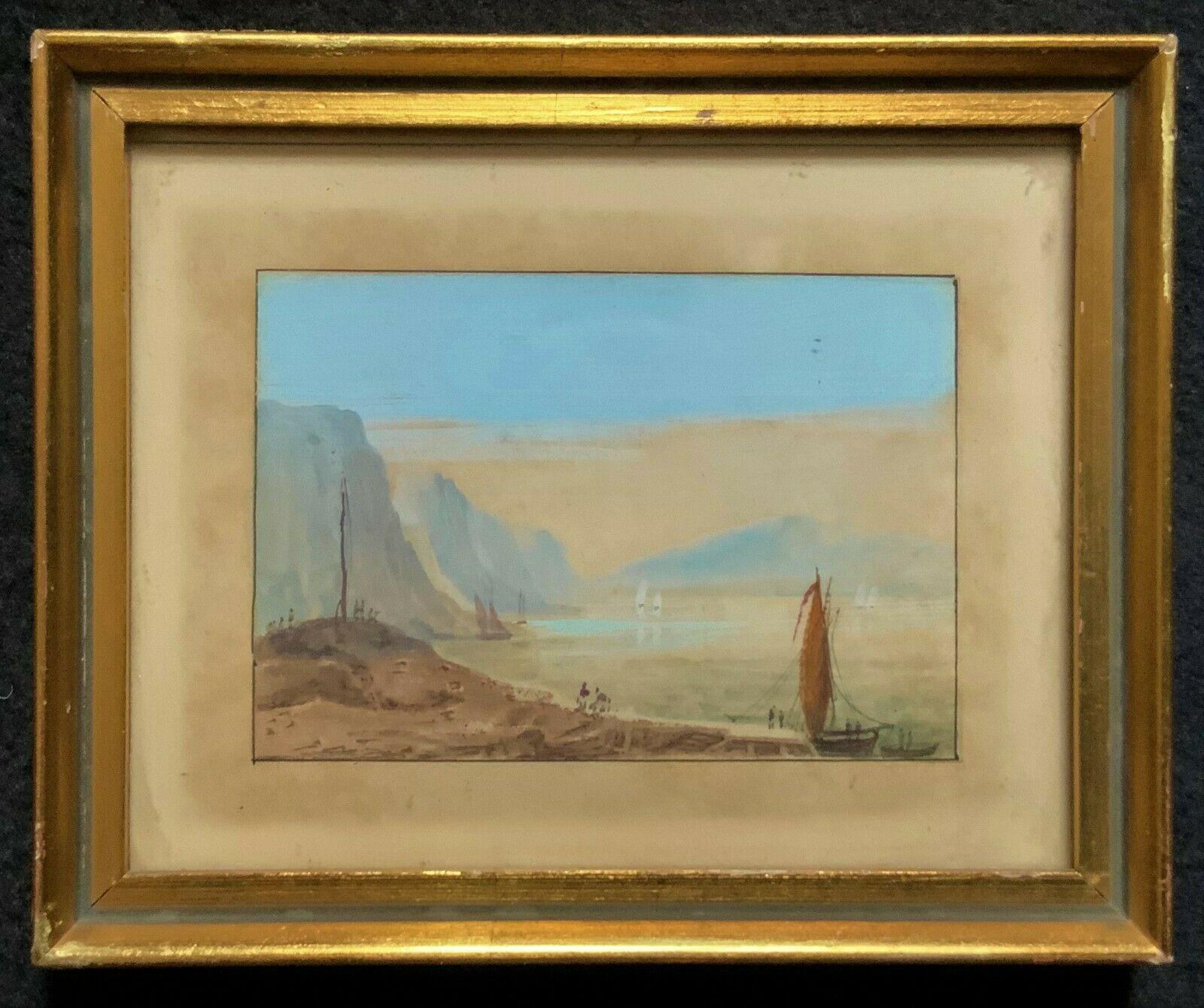 Exceptional Quality Vintage Miniature Seascape Coastal Watercolour Painting