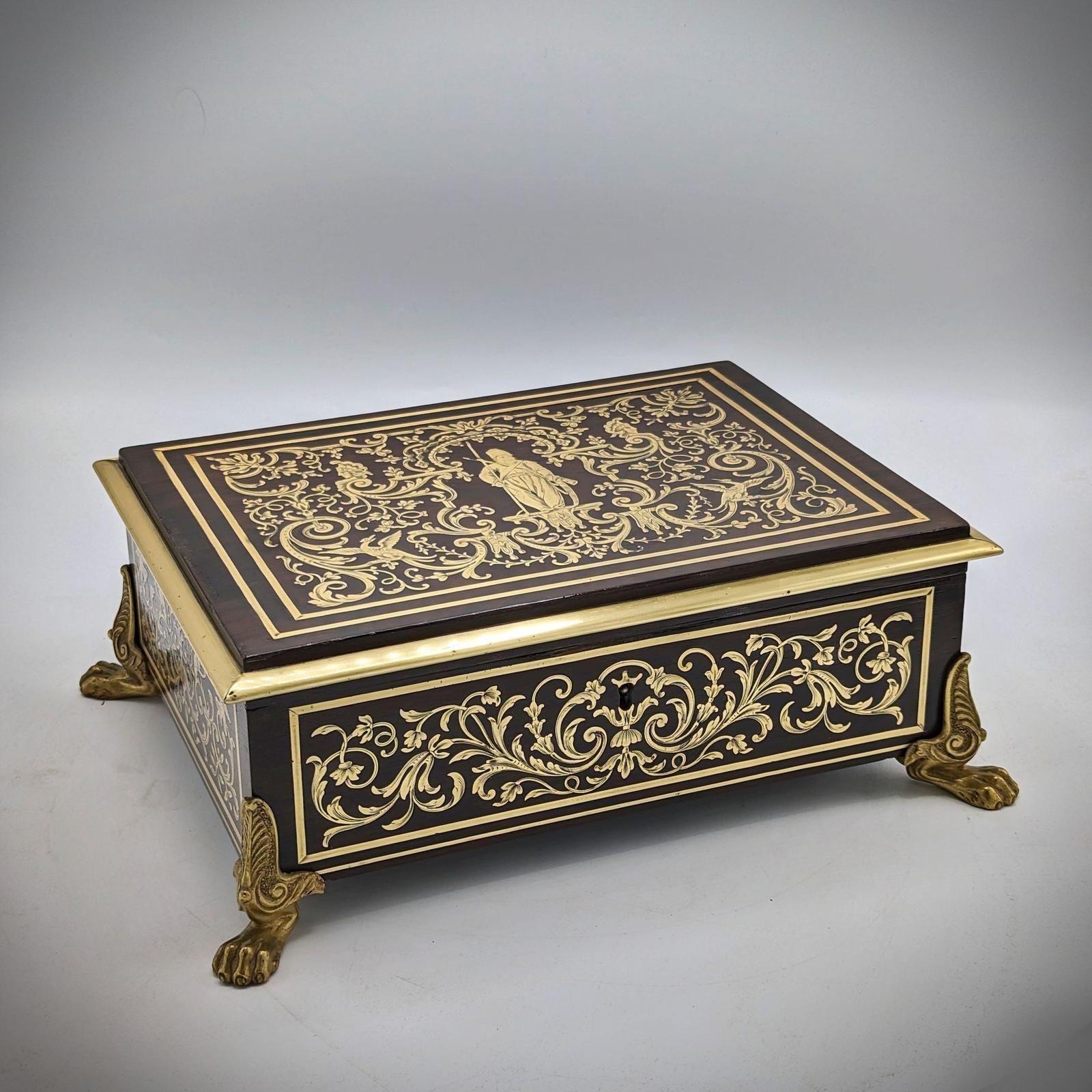 Exceptional Regency Brass Inlaid Table / Jewellery Box
