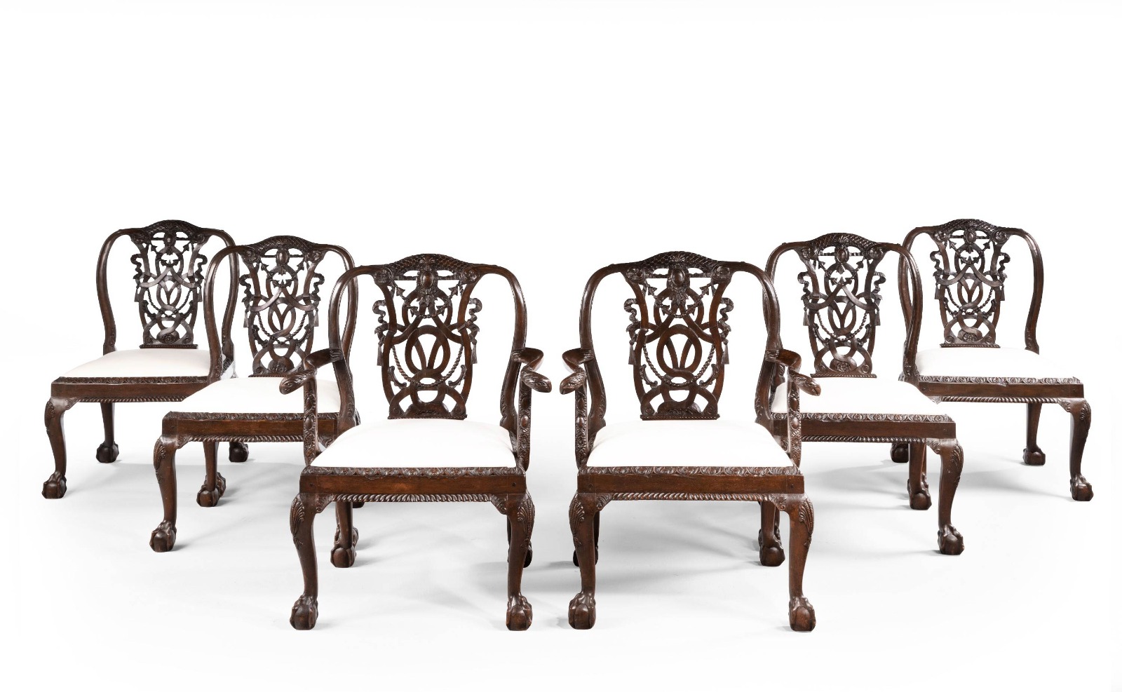 Exceptional Set of Six 19th Century Cuban Mahogany Framed Elbow Chairs