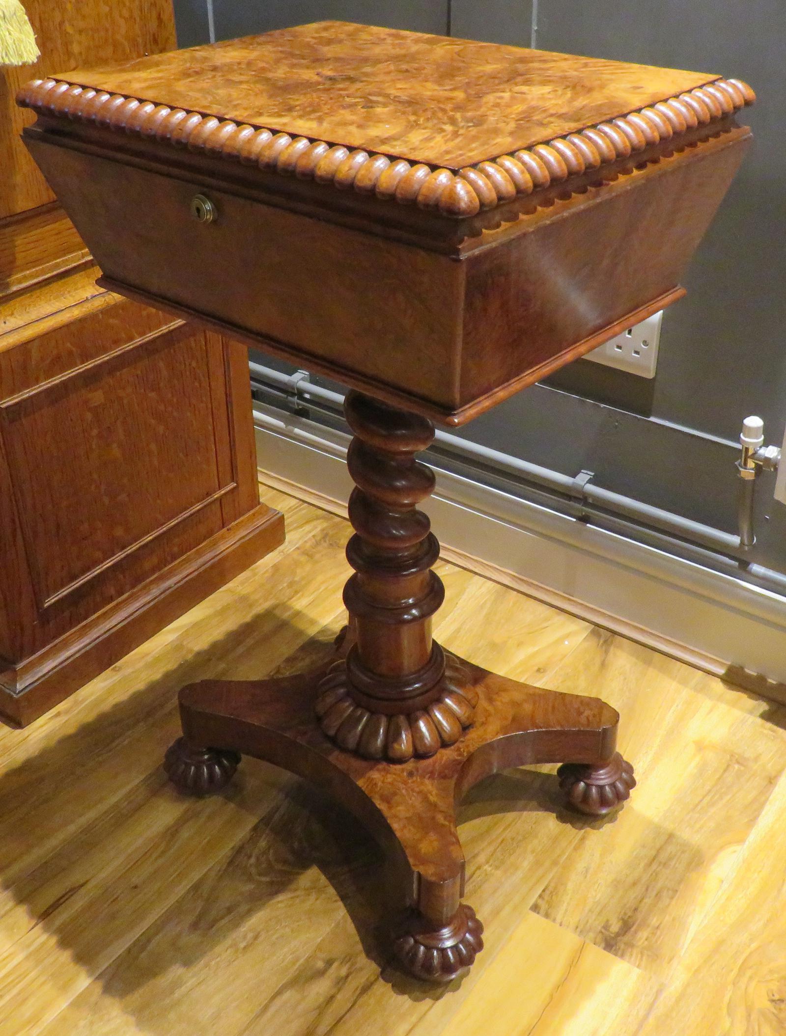 Exceptional Tea Poy Tea Caddy on Stand Burr Walnut
