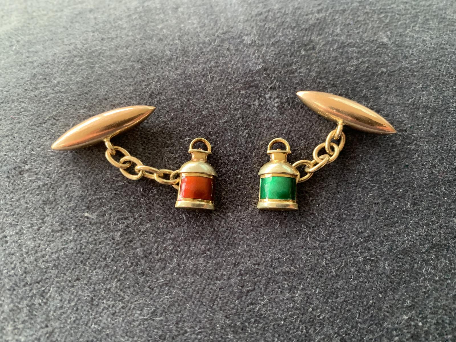 Exceptionally Fine 9ct Yellow Gold and Enamel Sailor’s / Sailing Cufflinks - Port and Starboard