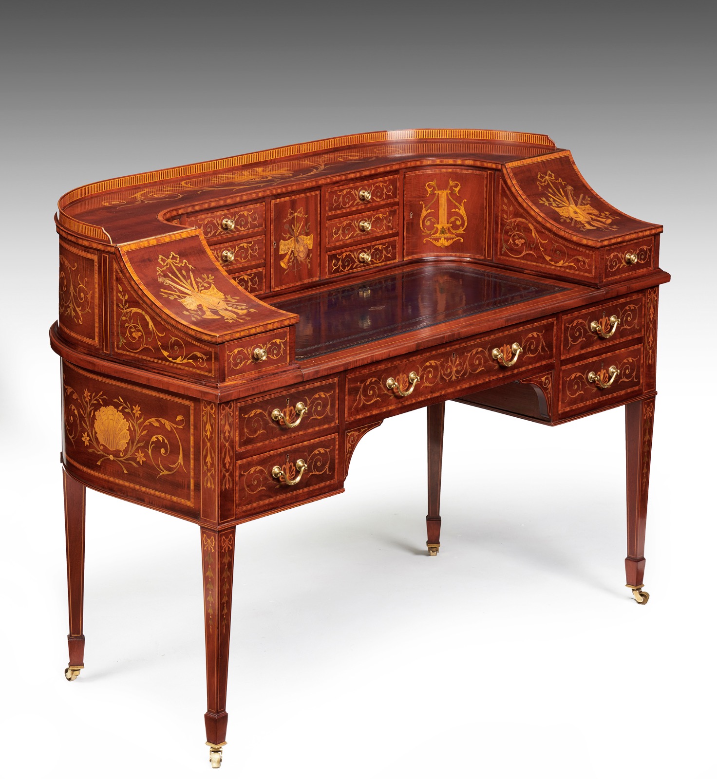 Exhibition Quality Maple & Co Mahogany, Satinwood & Marquetry Inlaid Victorian Carlton House Desk