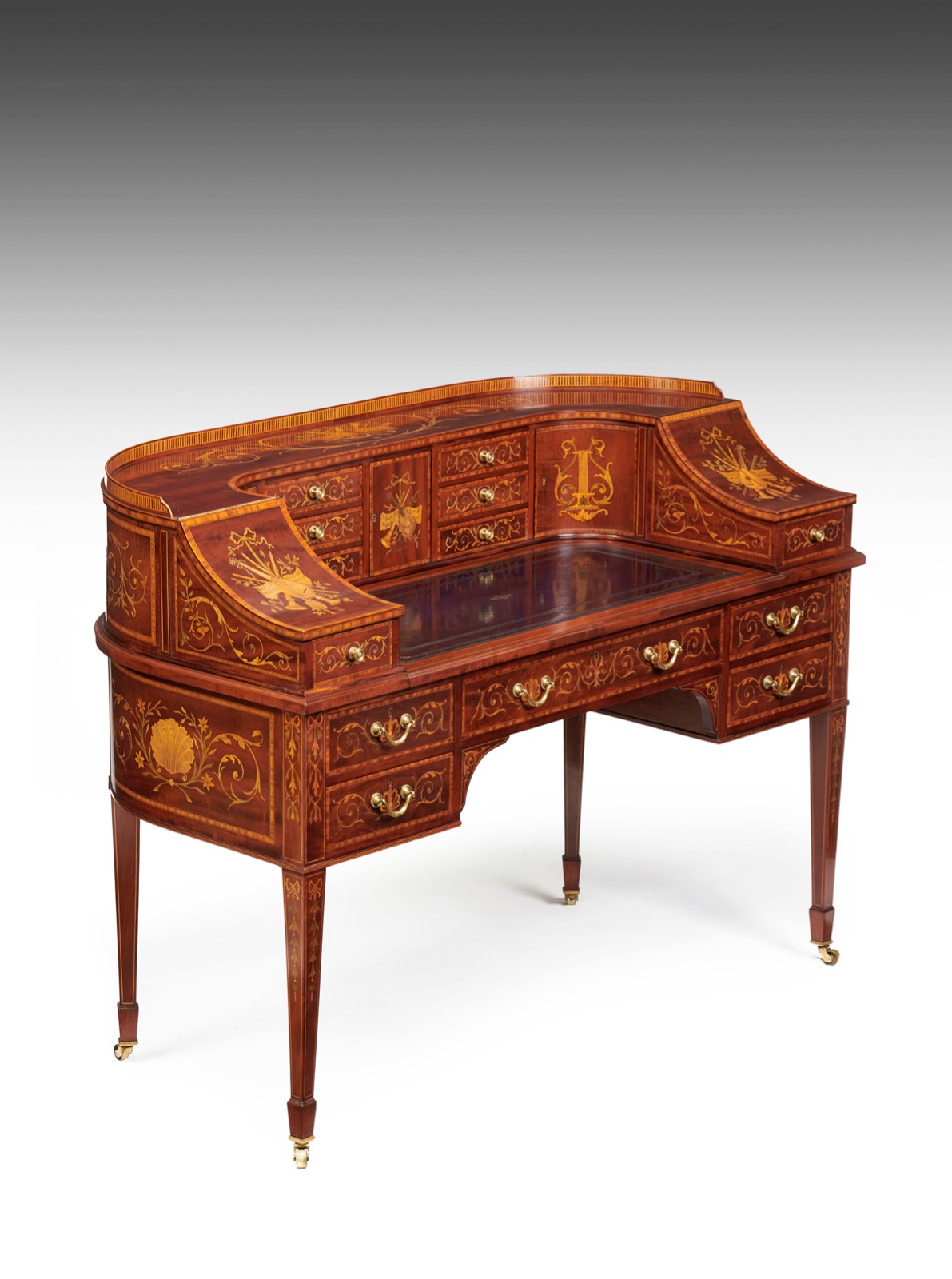 Exhibition Quality Maple & Co Mahogany, Satinwood & Marquetry Inlaid Victorian Carlton House Desk