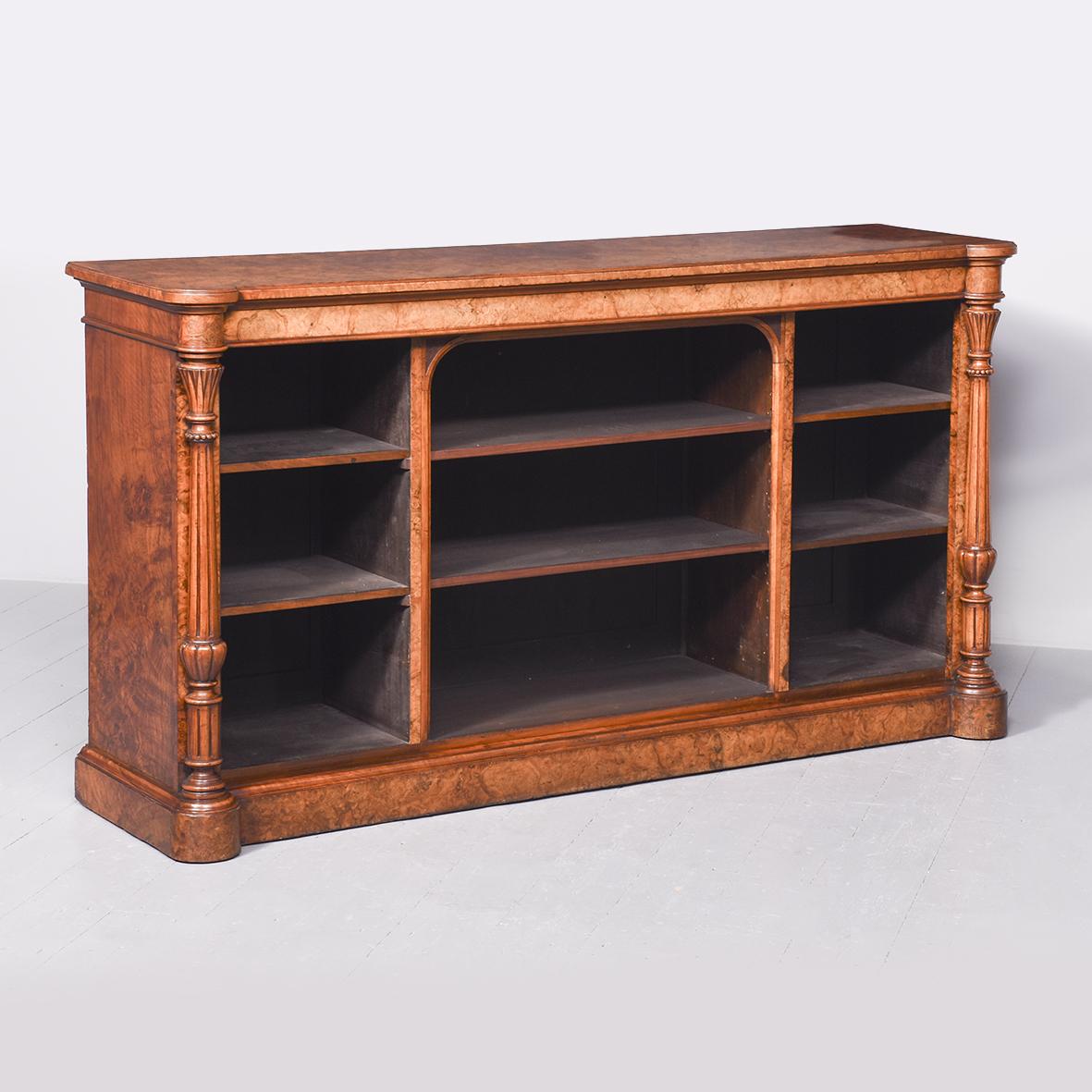 Exhibition Quality Victorian, Burr Walnut Open Bookcase