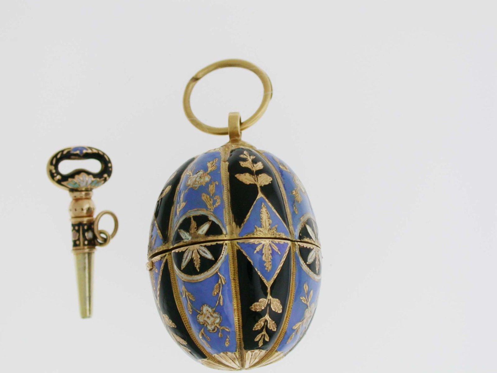 Exquisite 18 Kt Gold and Enamel Egg-Shaped Pendant Watch Swiss 1760 by Le Amalric Frères (1 of 1)