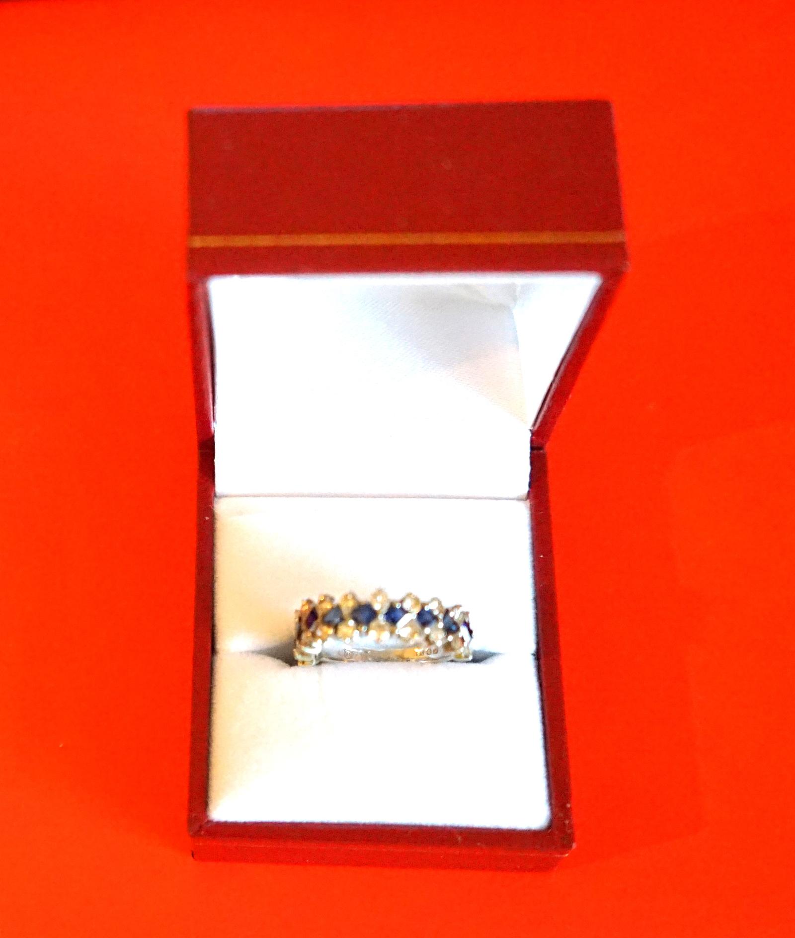 Antiques et Cetera has clarified that the Exquisite 18ct White Gold Diamond & Sapphire Half Eternity Ring - Boxed (LA559050) is genuinely of the period declared with the date/period of manufacture being 1970s