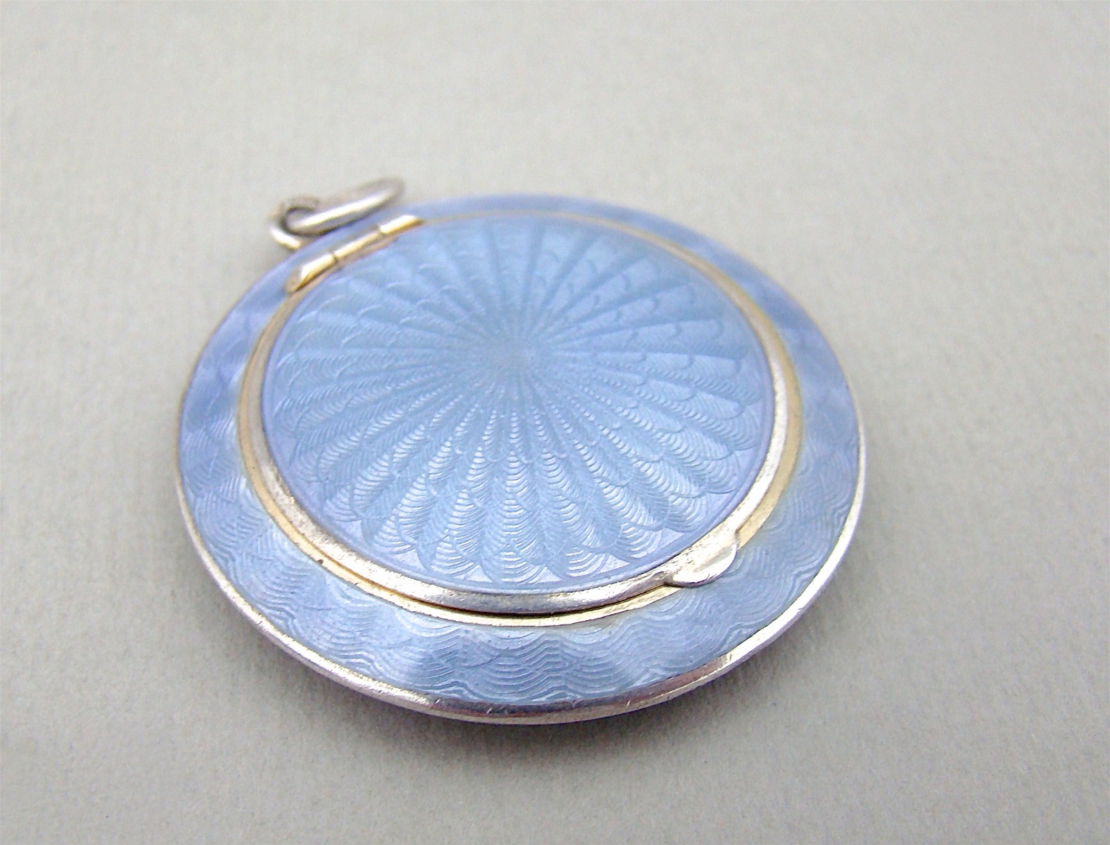 Exquisite Art Deco Continental Silver and Guilloche Enamel Compact c.1930