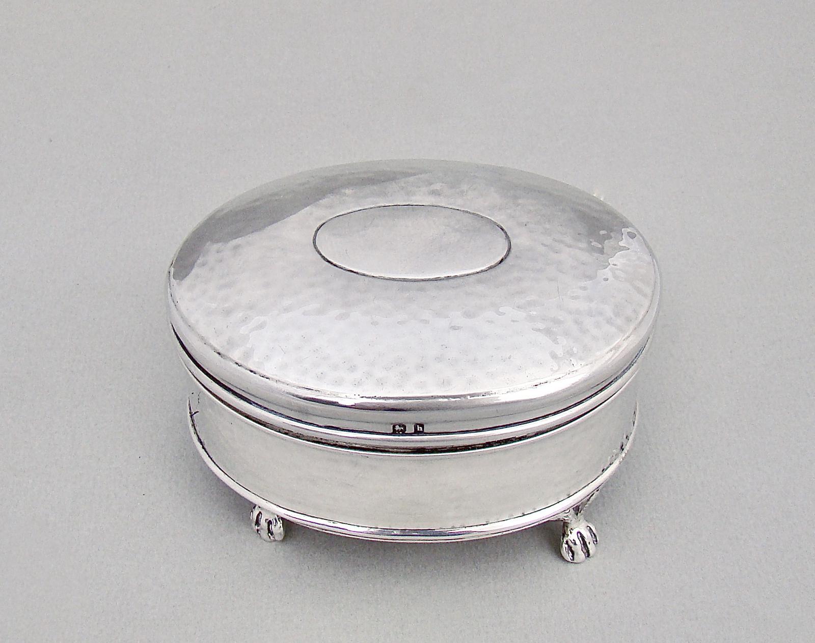 Exquisite Arts & Craft spot-hammered silver jewellery box by Blanckensee & Sons, Birmingham 1907