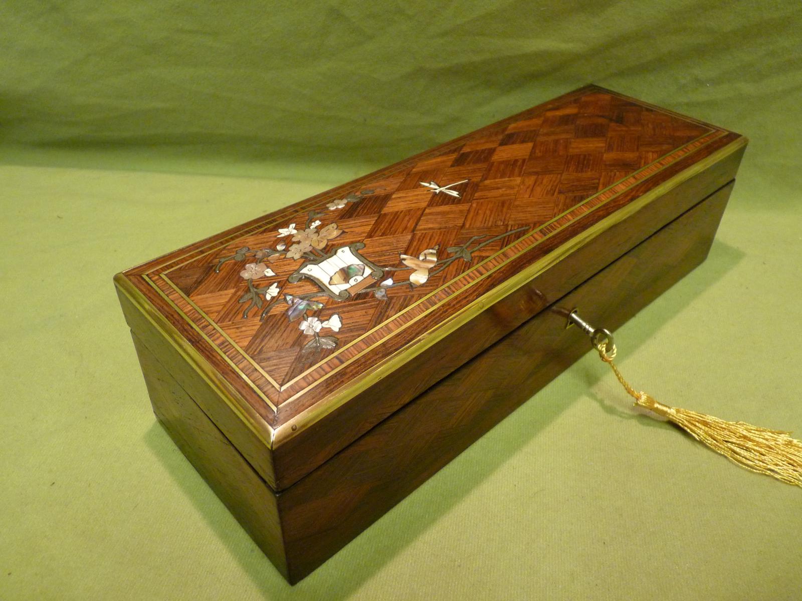 Exquisite French Inlaid – Parquetry Glove – Jewellery Box c.1870